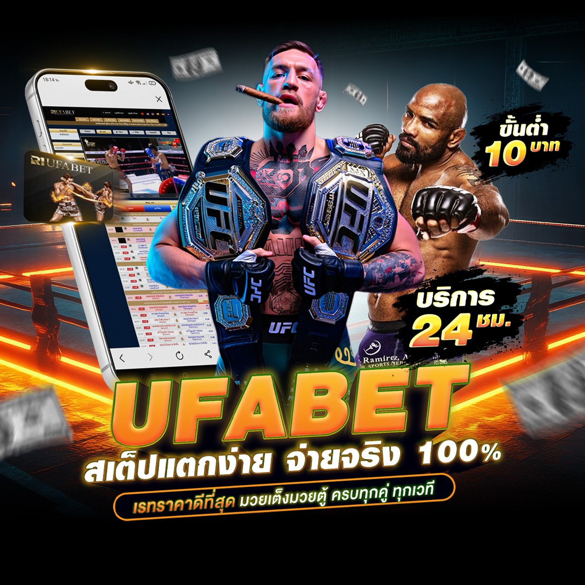 เว็บแทงมวยOne ที่เปิดให้แทงมวยวัน One Championship แบบสดๆ ครบทุกคู่ แทงได้ทุกคู่ ราคาเริ่มต้นที่ 10 บาทต่อคู่ ไม่ว่าคุณจะเป็นแฟนมวย แทงยกต่อยก เสมอ ไล่ลง ไม่คิดเงิน สเต็ปมวยไม่ตาย สเต็ปมวย ผสมกันได้ 1 -10 คู่ แอดมินบริการ ตลอด 24 ชม.