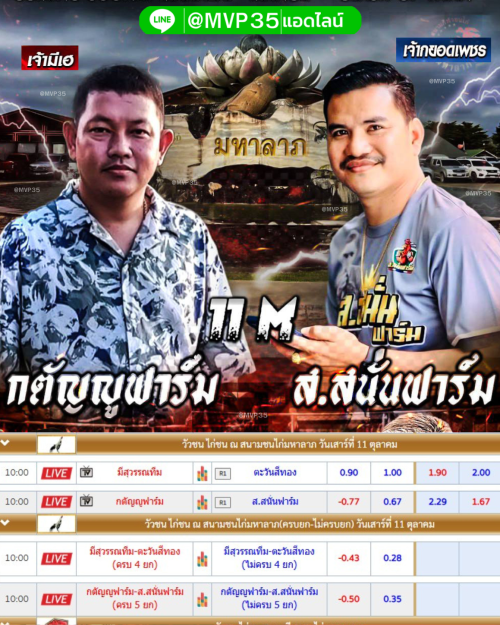 อัพเดตสุดยอด เว็บ UFABET MVP35 แทงไก่ชนออนไลน์ จ่ายจริง จ่ายเร็ว ฝาก-ถอนไม่มีขั้นต่ำผ่าน True Wallet ได้และมอบความมันผ่านช่องทาง ถ่ายทอดสด เว็บไก่ชน ออนไลน์ ครบทุกคู่ไม่มีพลาด