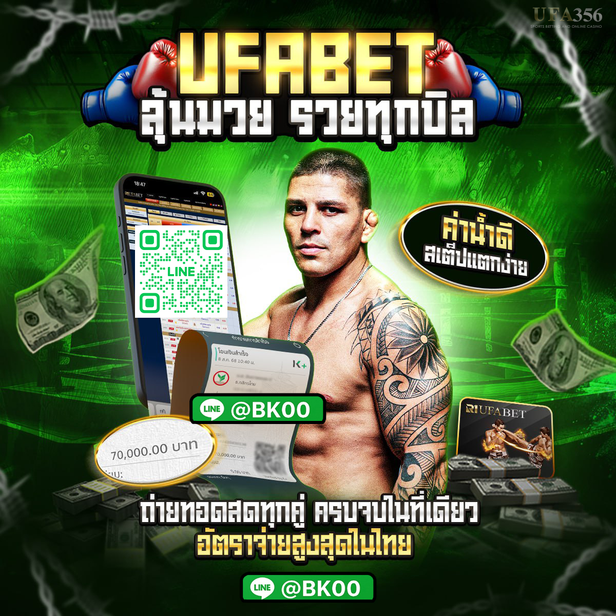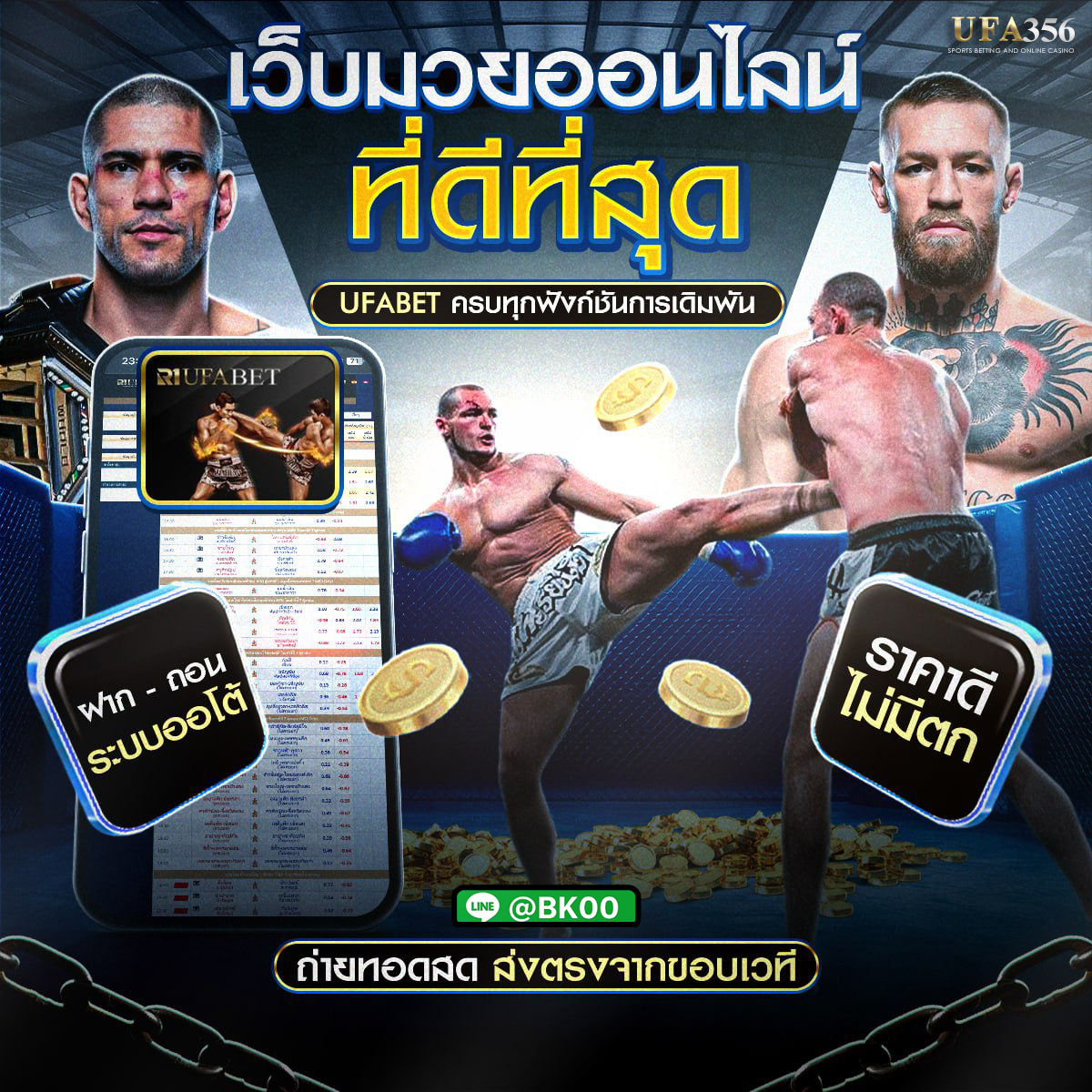 แทงมวยออนไลน์ กับ เว็บมวยออนไลน์ @bk00 ผู้ให้บริการแทงมวยออนไลน์ครบวงจร ทั้ง แทงมวยเดี่ยวแทงมวยสเต็ปแทงมวยชุดแทงมวยพักยก และยังมีการเดิมพันออนไลน์ให้ท่านเลือกอีกมากมาย @bk00 เป็นเว็บแทงมวยออนไลน์ที่มีความมั่นคงสูง สำหรับแฟนมวยทุกท่านที่กำลังให้ความสนใจในการแทงมวยออนไลน์ เราขอแนะนำ ระบบการแทงมวยออนไลน์ของ @bk00 ที่มีความทันสมัยที่สุด ใช้งานง่ายที่สุด มีให้บริการทั้งในระบบ Android และ ระบบ IOS พร้อมทั้งระบบถ่ายทอดสดมวยไทย ครบทุกคู่ที่เปิดให้แทงมวยออนไลน์ สดตรงถึงท่านทุกวัน คุณภาพคมชัดระดับ HD