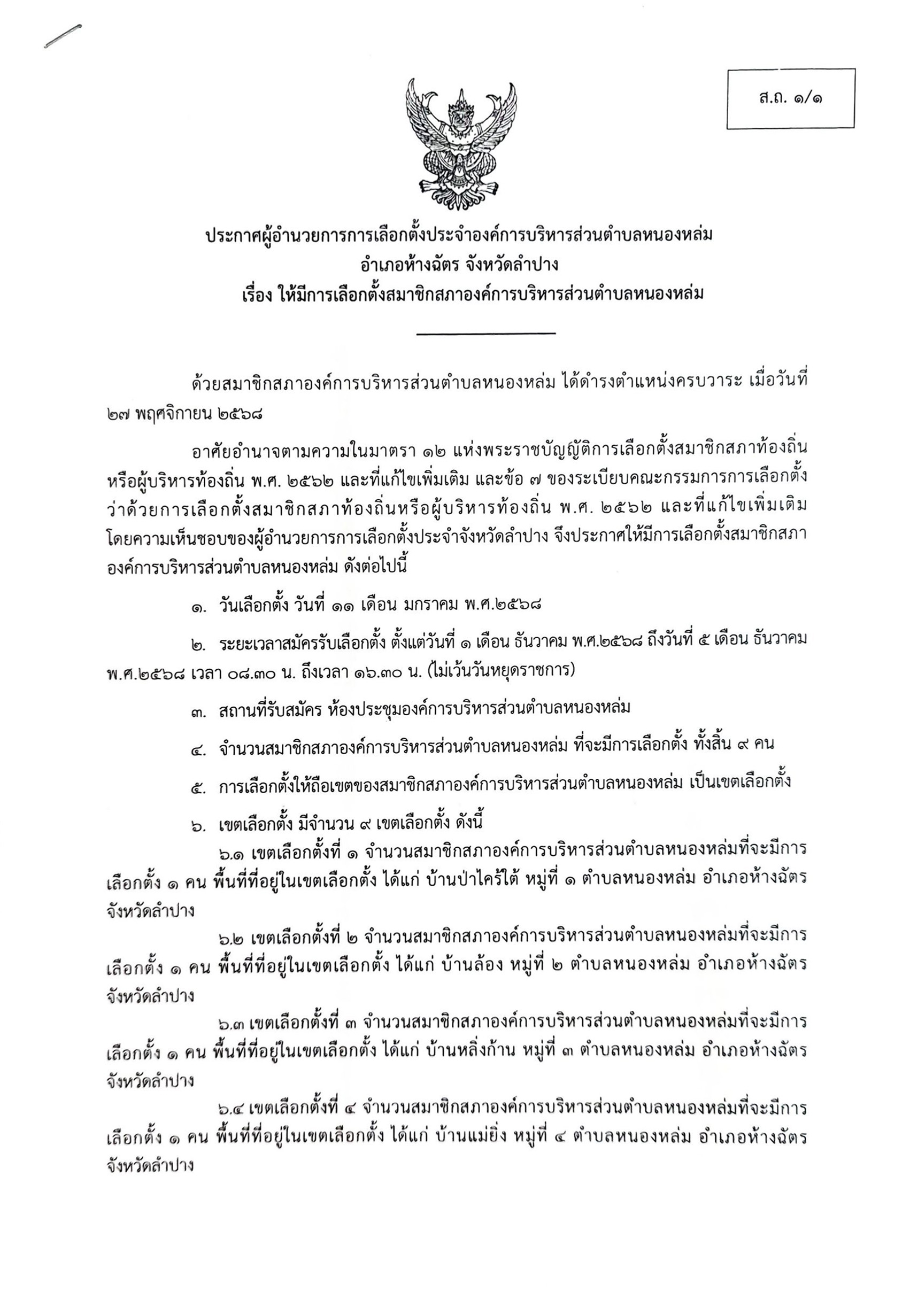 ประกาศ ให้มีการเลือกตั้ง สมาชิกสภาองค์การบริหารส่วนตำบลหนองหล่ม 0 Share FacebookTwitterEmailFacebook MessengerLINE