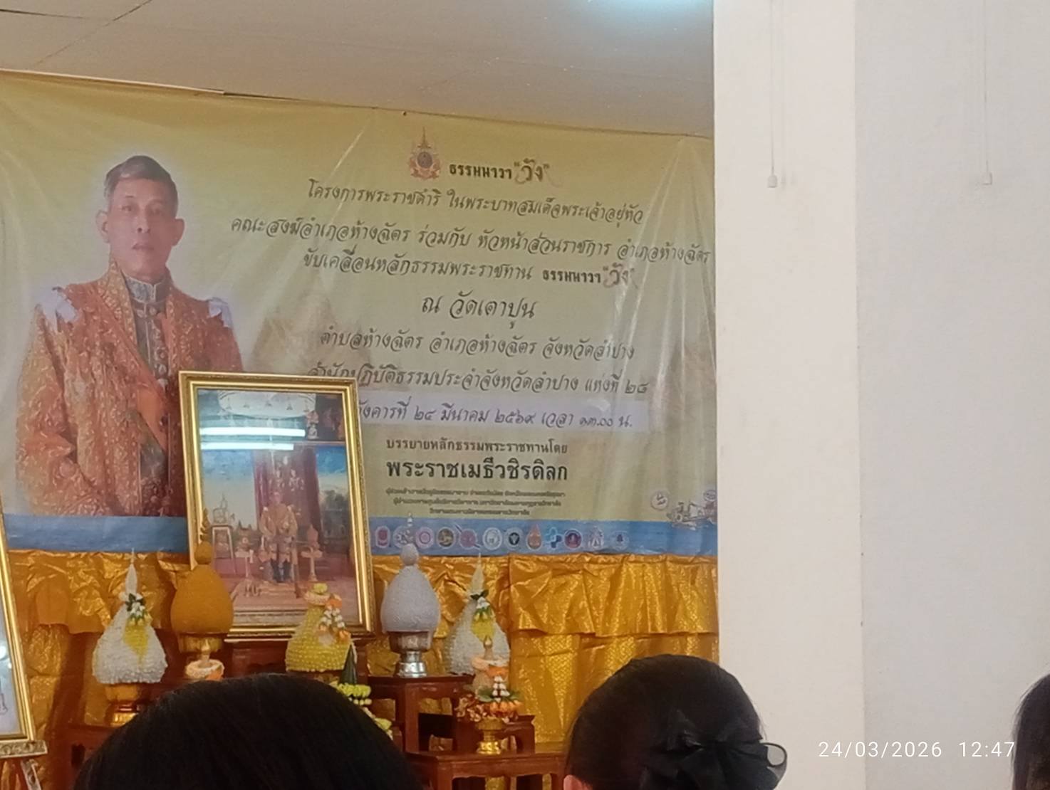 วันที่ 24 มีนาคม 2569 นายสุริยา ตาสุวรรณ์ นายกองค์การบริหารส่วนตำบลหนองหล่ม มอบหมายให้ นายมิตต์ อินสม รองนายกองค์การบริหารส่วนตำบลหนองหล่ม พร้อมด้วย นายนอม สมเปิง รองประธานสภาฯ เข้าร่วมกิจกรรมบรรยายธรรม ในหัวข้อ การเจริญมรรค ด้วยยา ๒ เม็ด ตามหลักธรรม ชุดพระราชทาน ธรรมนาวาวัง ภายใต้ โครงการ “สังฆนาวา สร้าง Safe Zone ที่ใจ อย่างยั่งยืน” ประจำปี ๒๕๖๙ ตามโครงการพระราชดำริ ”ธรรมนาวา “วัง” บรรยายธรรม โดย พระราชเมธีวชิรดิลก ผู้ช่วยเจ้าอาวาส วัดชูจิตธรรมาราม อำเภอวังน้อย จังหวัดพระนครศรีอยุธยา ผู้อำนวยการศูนย์บริการวิชาการ มหาวิทยาลัยมหามกุฏราชวิทยาลัย วิทยาเขตมหาวชิราลงกรณราชวิทยาลัย ณ ศาลาอเนกประสงค์ วัดเตาปูน ตำบลห้างฉัตร อำเภอห้างฉัตร จังหวัดลำปาง![]()