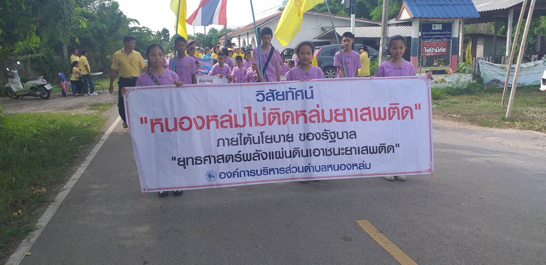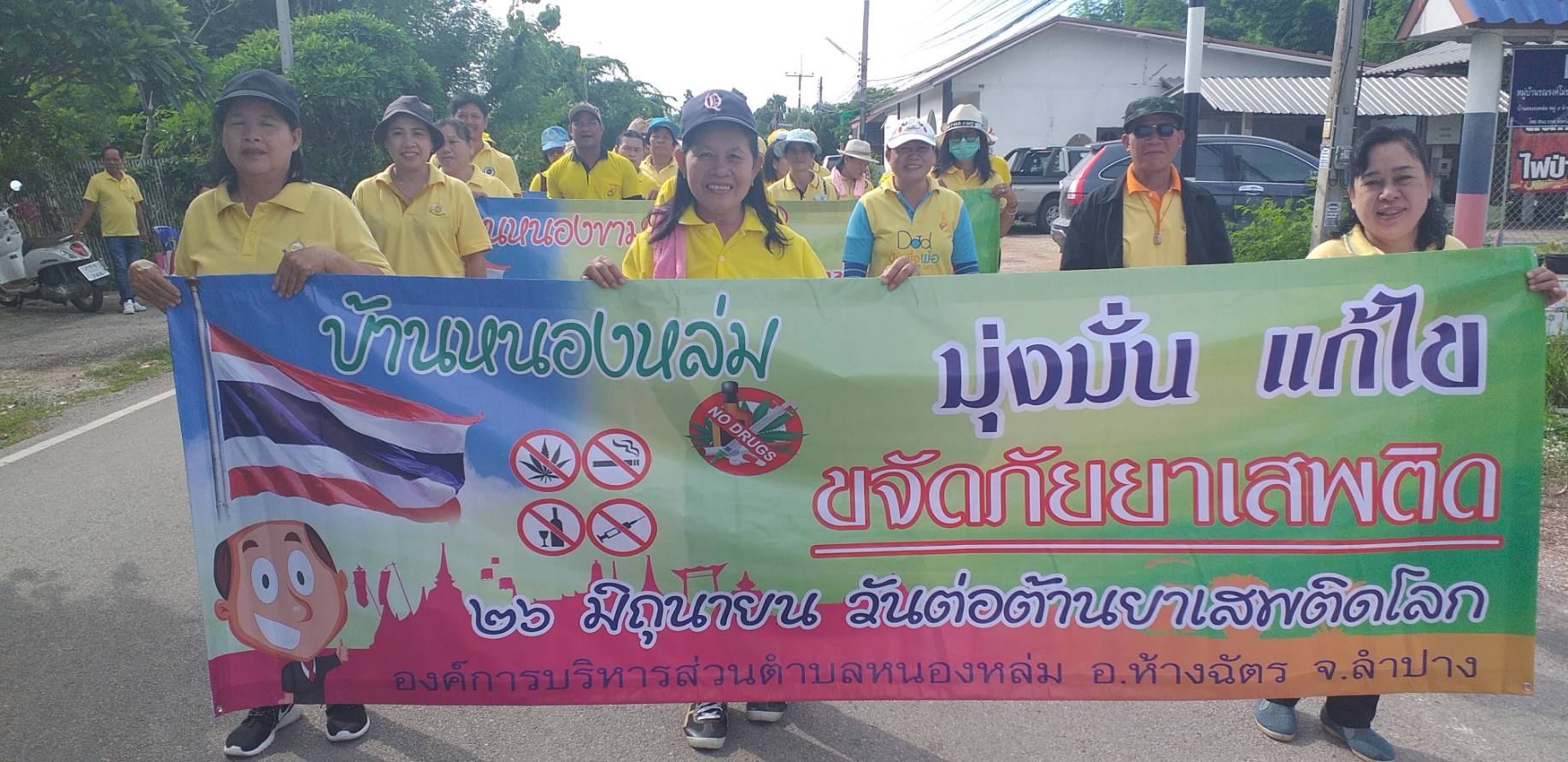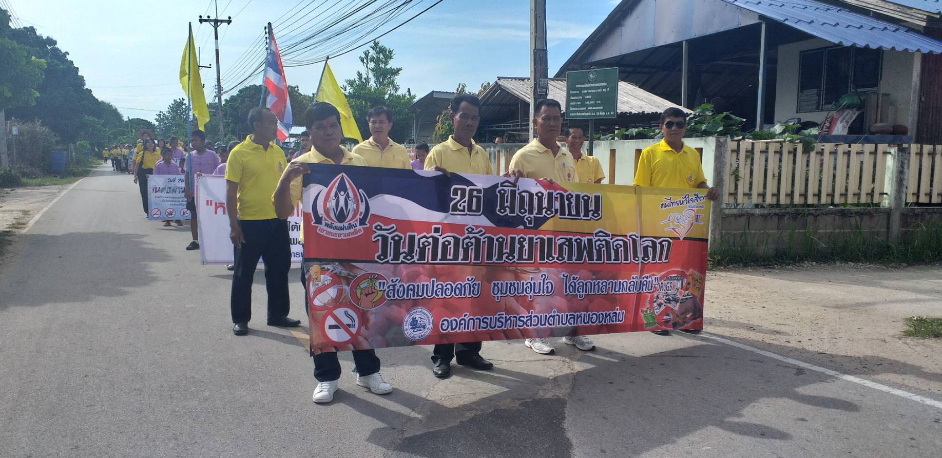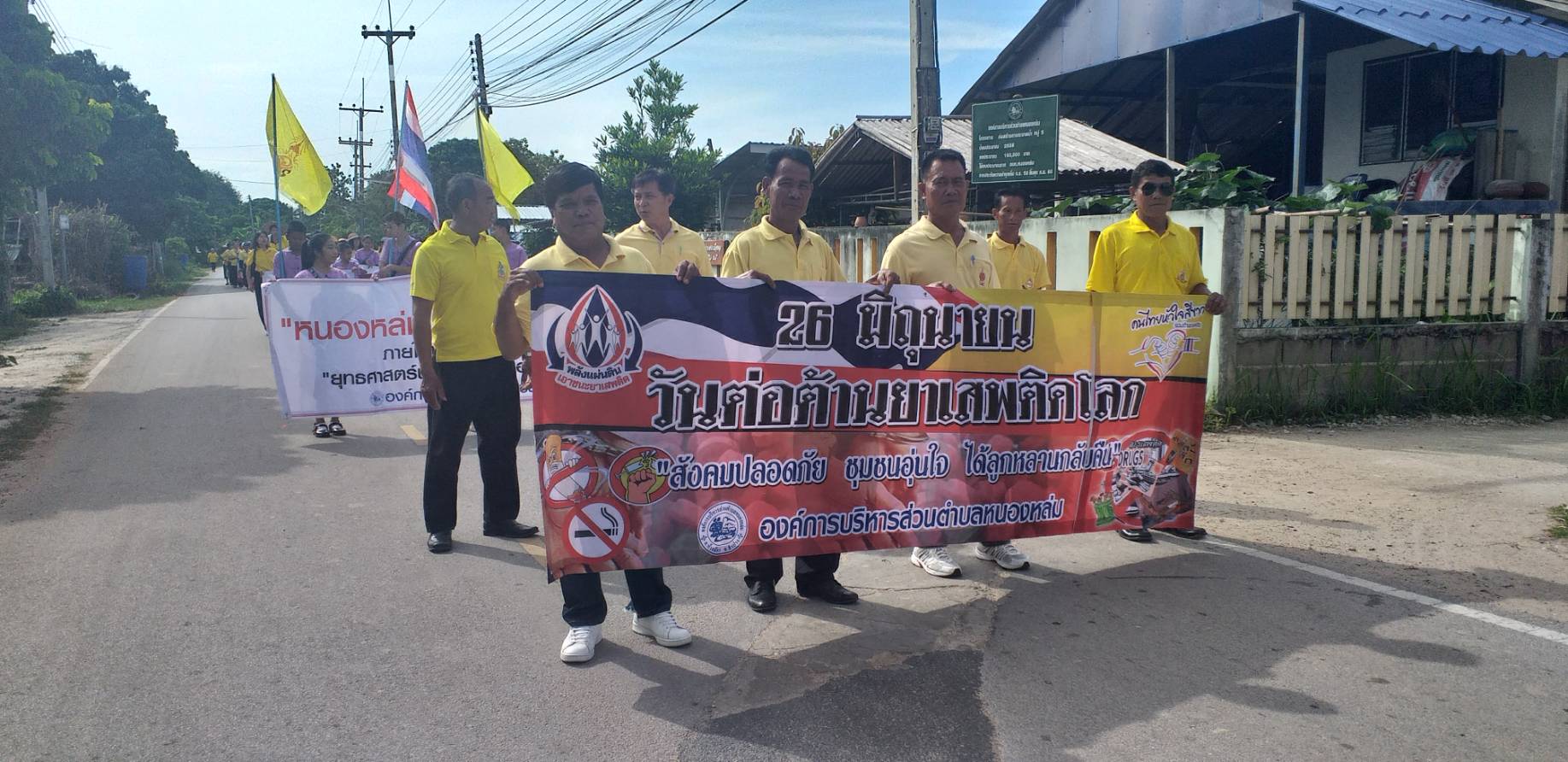 26 มิถุนายน 2562 เวลา 08.30 น. องค์การบริหารส่วนตำบลหนองหล่ม นำโดยนายสุริยา ตาสุวรรณ์ นายกองค์การบริหารส่วนตำบลหนองหล่ม ร่วมกับสถานศึกษาในพื้นที่ตำบลหนองหล่ม ผู้นำชุมชน สมาชิกสภาฯ และอาสาสมัครสาธารณสุข พลังมวลชนในพื้นที่ จำนวนกว่า 200 คน ร่วมกิจกรรมเดินรณรงค์เนื่องในวันต่อต้านยาเสพติดโลก ประจำปี ๒๕๖๒ ภายใต้แนวคิดและคำขวัญ “มุ่งมั่น แก้ไข ขจัดภัยยาเสพติด” เพื่อเป็นการประชาสัมพันธ์แก่ประชาชนในพื้นที่และเป็นการสร้างความตระหนักให้แก่ประชาชน และเยาวชน ให้ทราบถึงพิษภัยยาเสพติดที่มีผลต่อร่างกาย อีกทั้งยังเป็นการรวมพลังจากทุกภาคส่วนของสังคมให้เข้ามามีส่วนร่วมในการแก้ไขปัญหายาเสพติด โดยขบวนเริ่มเดินรณรงค์ ตั้งแต่บริเวณสามแยกบ้านหนองหล่ม ถึงที่ทำการ อบต.หนองหล่ม ขอขอบคุณหน่วยงานต่างๆพลังมวลชนที่ร่วมกิจกรรมในครั้งนี้ทำให้กิจกรรมสำเร็จไปตามวัตถุประสงค์ทุกประการ