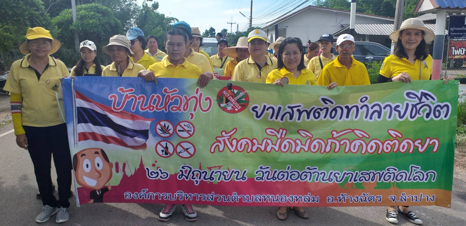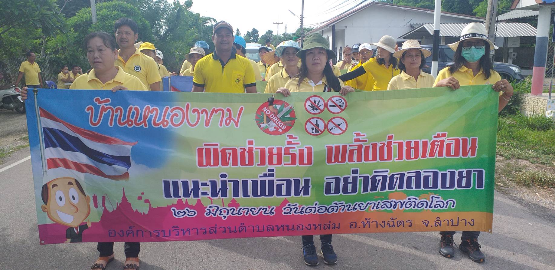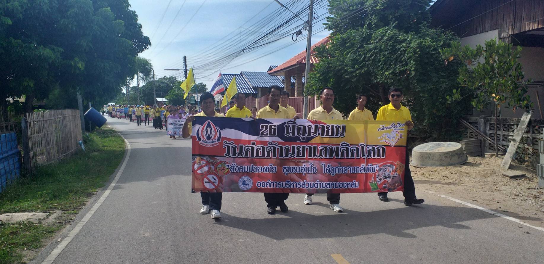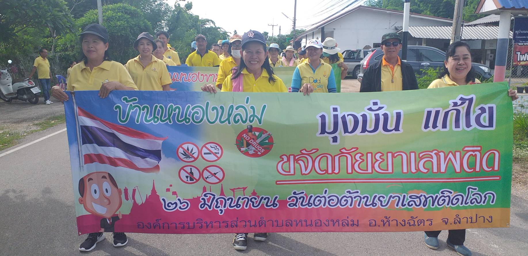 26 มิถุนายน 2562 เวลา 08.30 น. องค์การบริหารส่วนตำบลหนองหล่ม นำโดยนายสุริยา ตาสุวรรณ์ นายกองค์การบริหารส่วนตำบลหนองหล่ม ร่วมกับสถานศึกษาในพื้นที่ตำบลหนองหล่ม ผู้นำชุมชน สมาชิกสภาฯ และอาสาสมัครสาธารณสุข พลังมวลชนในพื้นที่ จำนวนกว่า 200 คน ร่วมกิจกรรมเดินรณรงค์เนื่องในวันต่อต้านยาเสพติดโลก ประจำปี ๒๕๖๒ ภายใต้แนวคิดและคำขวัญ “มุ่งมั่น แก้ไข ขจัดภัยยาเสพติด” เพื่อเป็นการประชาสัมพันธ์แก่ประชาชนในพื้นที่และเป็นการสร้างความตระหนักให้แก่ประชาชน และเยาวชน ให้ทราบถึงพิษภัยยาเสพติดที่มีผลต่อร่างกาย อีกทั้งยังเป็นการรวมพลังจากทุกภาคส่วนของสังคมให้เข้ามามีส่วนร่วมในการแก้ไขปัญหายาเสพติด โดยขบวนเริ่มเดินรณรงค์ ตั้งแต่บริเวณสามแยกบ้านหนองหล่ม ถึงที่ทำการ อบต.หนองหล่ม ขอขอบคุณหน่วยงานต่างๆพลังมวลชนที่ร่วมกิจกรรมในครั้งนี้ทำให้กิจกรรมสำเร็จไปตามวัตถุประสงค์ทุกประการ