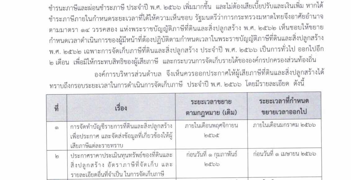 Image ประกาศองค์การบริหารส่วนตำบลหนองหล่ม เรื่อง การขยายกำหนดเวลาดำเนินการตามพระราชบัญญัติภาษีที่ดินและสิ่งปลูกสร้าง พ.ศ. 2562 ประจำปี 2566 0 Share FacebookTwitterEmailFacebook MessengerLINE