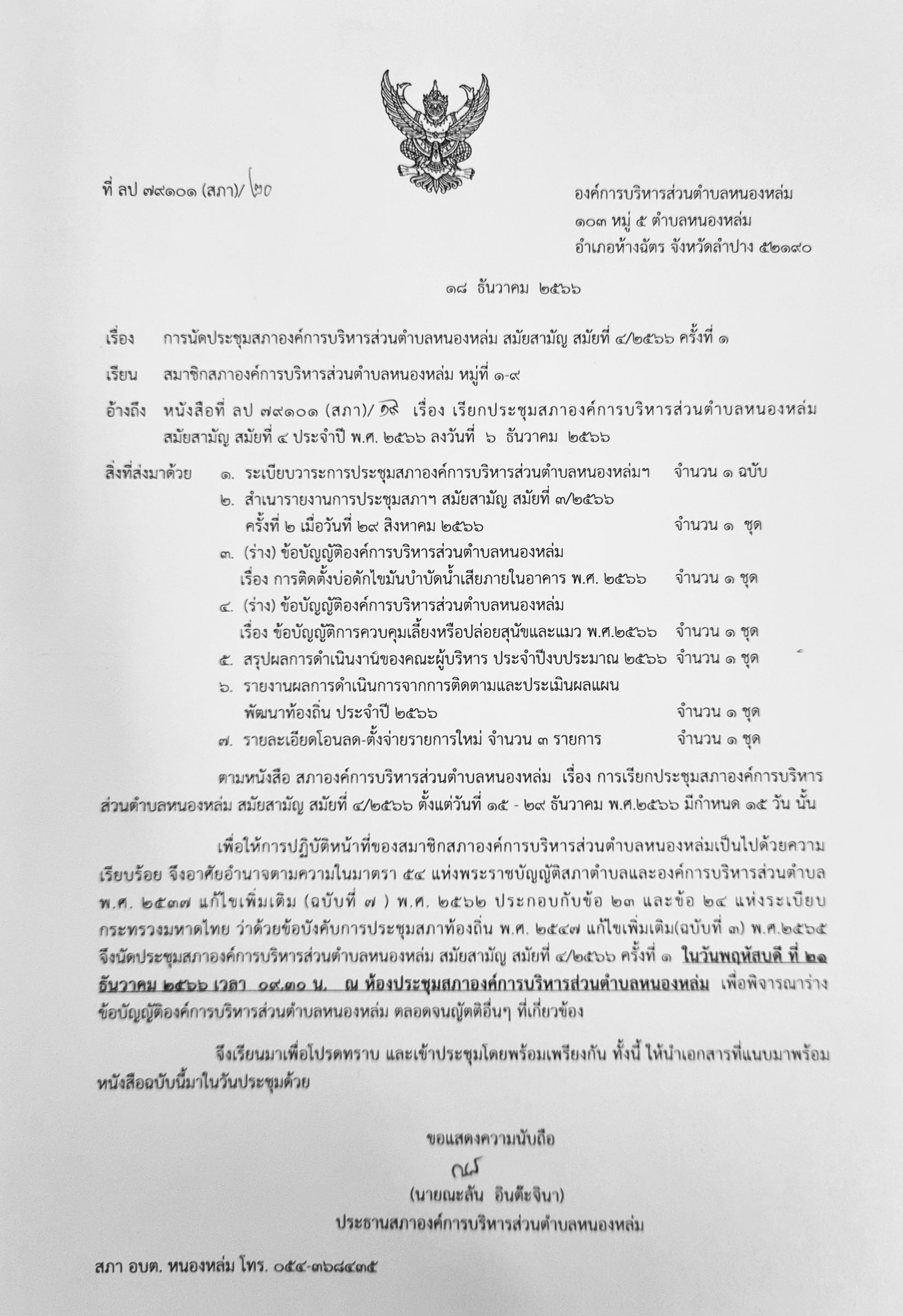 การนัดประชุมสภาองค์การบริหารส่วนตำบลหนองหล่ม สมัยสามัญ สมัยที่ 4/2566 ครั้งที่ 1 0 Share FacebookTwitterEmailFacebook MessengerLINE